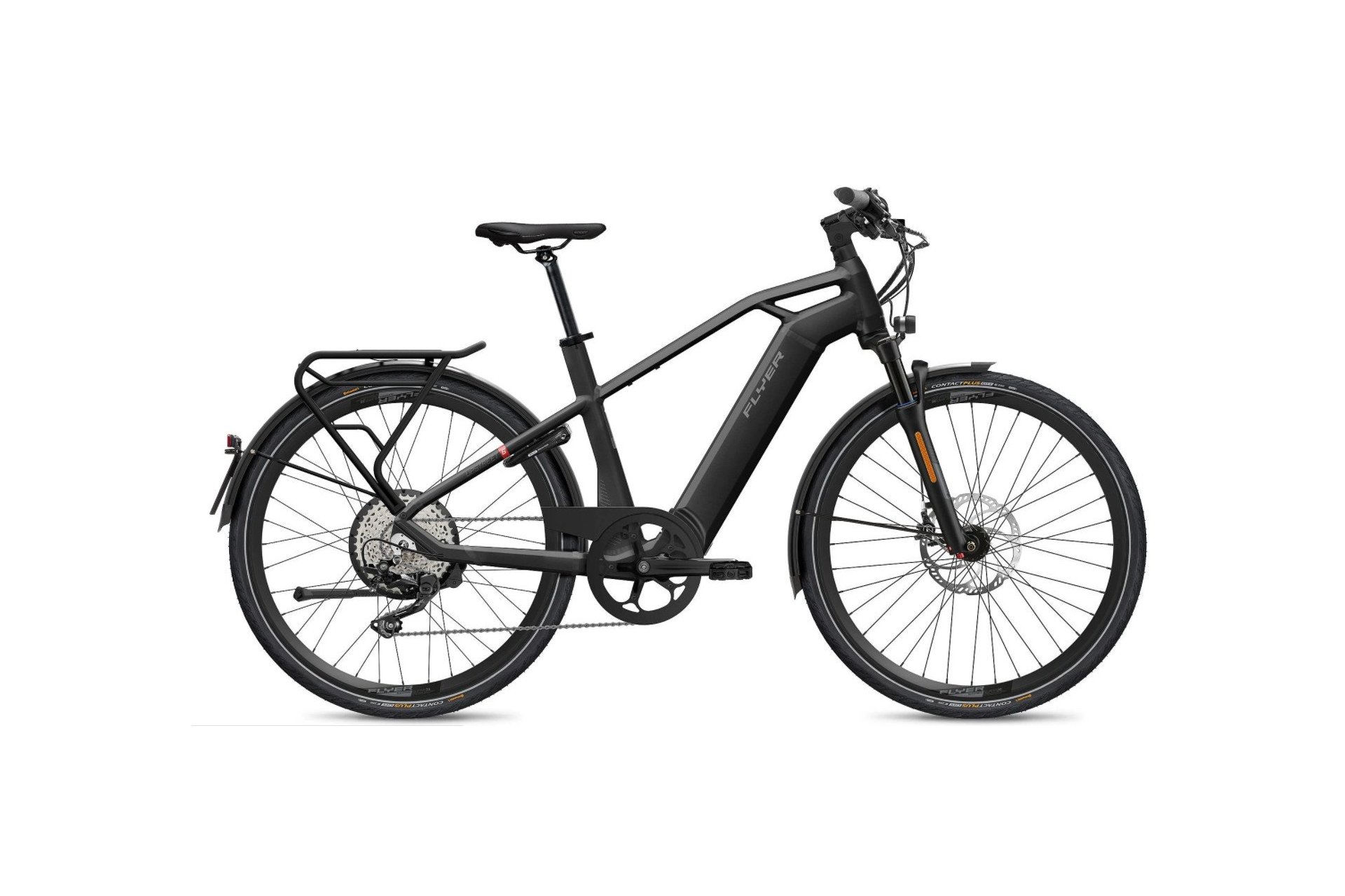 Flyer Upstreet6 7.10 Mit Highspeed über den Asphalt gleiten, Beschleunigung erleben, den Wind im Gesicht spüren, die Dynamik des Bikes genießen, ohne Parkplatzsorgen und ohne Stress stilvoll am Feierabendverkehr vorbeifahren und die bewundernden Blicke genießen. Der Upstreet6 definiert Mobilität im Alltag neu: effizient, aktiv und nachhaltig. Das für Pendler konzipierte Highspeed-E-Bike (S-Pedelec) ist ausschließlich mit Tretunterstützung bis 45 km/h erhältlich. Kraftvoll und nahezu geräuschlos entfaltet der Nabenmotor sein Potenzial und garantiert eine ruhige und dynamische Fahrt. Auch optisch zeigt sich das Upstreet6 mit klaren Linien und Detaillösungen wie dem perfekt in den Vorbau integrierten FIT D1 Display dynamisch. Der vollintegrierte FLYER FIB Akku mit 810 Wh ist für hohe Reichweiten ausgelegt und liefert auch auf längeren Arbeitswegen und Umwegen konstant Power. Der Weg zur Arbeit hat noch nie so viel Spaß gemacht.