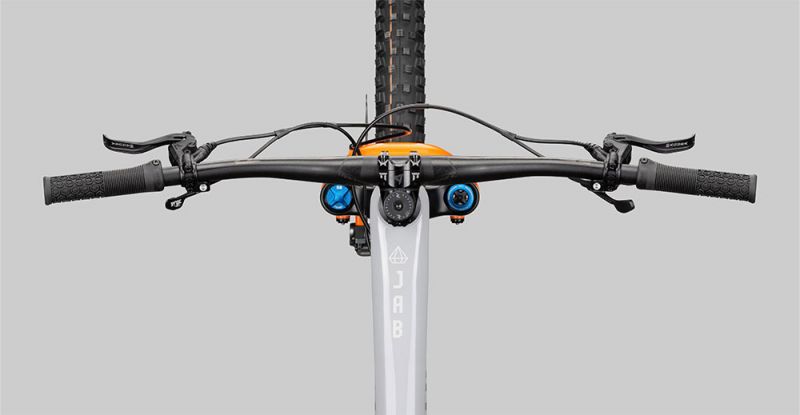 Basis für den Trailspaß ist der sehr leichte JAB Vollcarbonrahmen mit ca. 2.200 Gramm Rahmengewicht, der alle modernen technischen Standards beinhaltet und Dir mittels Flip Chip die Möglichkeit zur Geometrienanpassung gibt. Am Hinterbau generiert der JAB Rahmen 160mm Federweg über das Spitzen – Luftfederbein Fox Float X2 Factory, das Du mit dem 2 Position Hebel blitzschnell für lange und steile Climbs in der Druckstufe verhärten kannst.