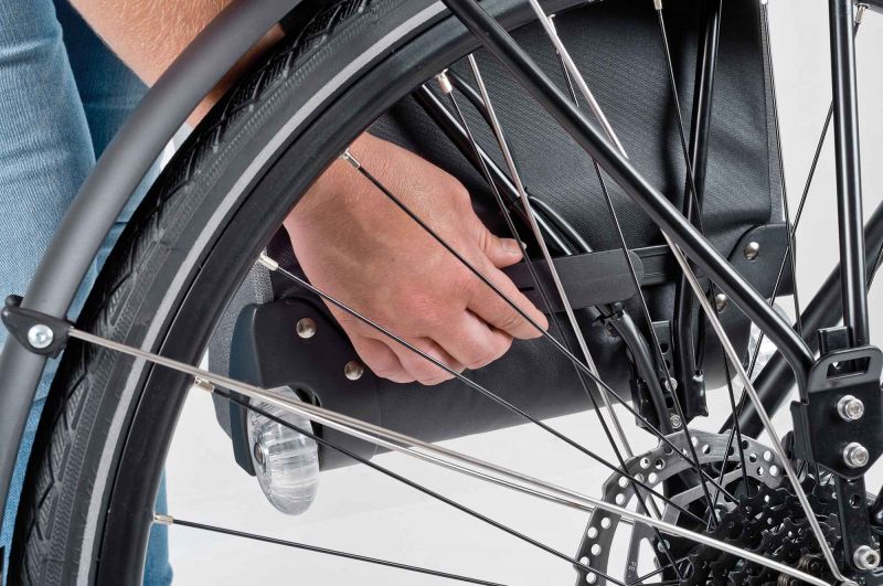 • Teleskopgriff verschwindet beim Anbringen am Fahrrad hinter dem Reißverschluss