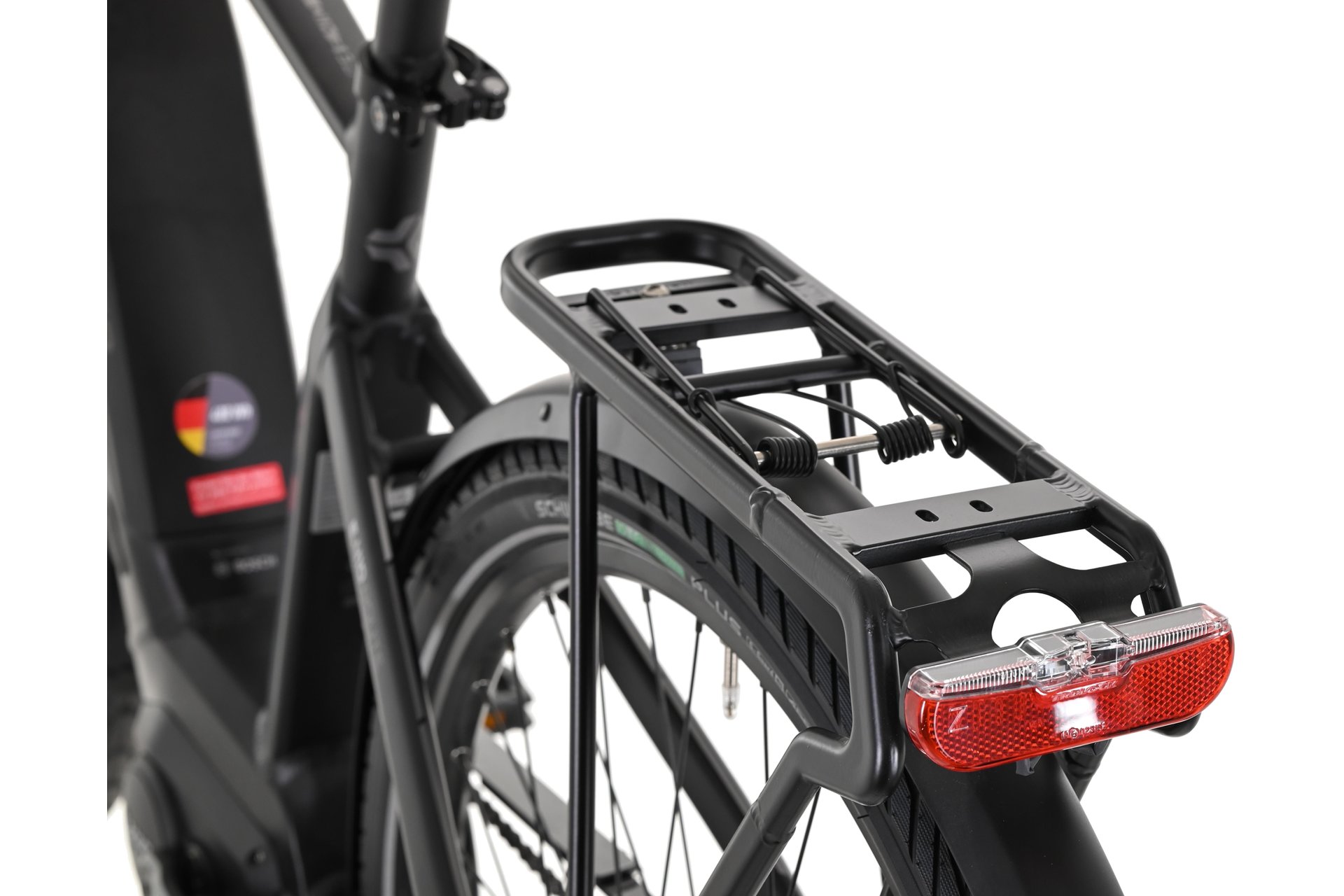 Das fängt bei den 28″ Laufrädern an und endet beim schicken Diamant Rahmen aus Aluminium. Für den nötigen Vortrieb sorgt dabei ein kräftiger Bosch Active Line Plus Mittelmotor mit 50 Nm Drehmoment. Damit der Spaß kein jähes Ende findet, setzt Carver auf einen großzügigen 400 Wh Intube-Akku. Dieser bietet selbst für lange Ausfahrten genug Saft.Das Carver Route E.410 ist ein sehr durchdachtes und sinnig ausgestattetes E-Trekkingbike.