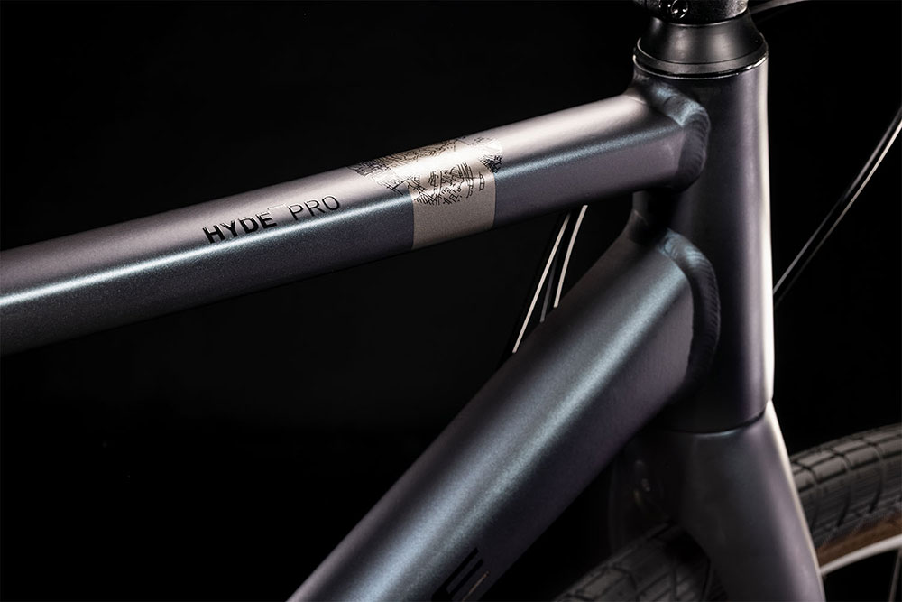 Bei der Entwicklung des Hyde haben wir uns an unseren 29er Hardtails orientiert. Doppelt konifizierte Aluminiumrohrsätze bilden eine stabile, haltbare, leichte und agile Rahmenstruktur, die dank nahtlos integrierter Montagepunkte die individuelle Nachrüstung mit Gepäckträger und Schutzblechen ermöglicht. über das Exzenter Tretlager kann der wartungsarme Zahnriemen gespannt werden, eingefädelt wird dieser durch das, kaum erkennbare, zu öffnende Ausfallende. Schließlich komplettiert die schlanke, steife Gabel den Rahmen, ihr Spezialgebiet: ein knackiges, präzises Lenkverhalten in Kombination mit wenig Gewicht und einem eleganten Look.