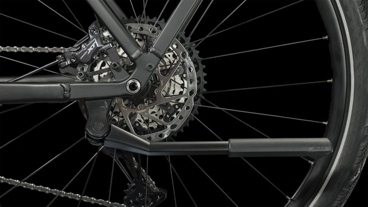 Und auf die Newmen Laufräder wurden Schwalbe Marathon Efficiency Reifen aufgezogen, weil beides wenig wiegt, super robust ist und top Grip bietet. Dazu sorgen die RockShox Recon Gold RL Luftfedergabel, die gefederte Byschulz Sattelstütze und der verstellbare Vorbau für angenehmen Fahrkomfort. Last, but not least gibt’s den integrierten Gepäckträger IC 3.0, Schutzbleche, einen Seitenständer und Lichter mit dazu.