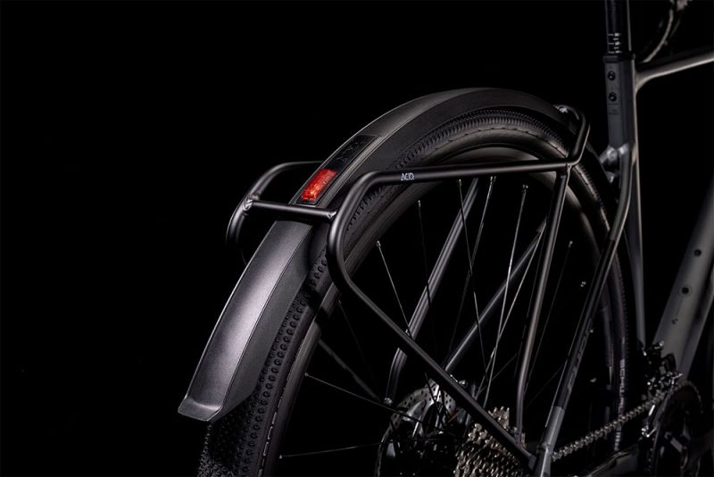 Das Cube Nuroad Pro FE bietet dieselben Vorzüge wie das Nuroad Pro: stabiles Handling, robuste Konstruktion, dazu Onroad- wie Offroad-Qualitäten. On top gibt’s hier jedoch ein Komplettset an praktischem Zubehör, bestehend aus einem superbelastbaren Gepäckträger, extralangen Schutzblechen und einem kompletten Beleuchtungssystem, damit das Bike auch auf längeren Touren oder dem Weg zur Arbeit einwandfrei funktioniert.